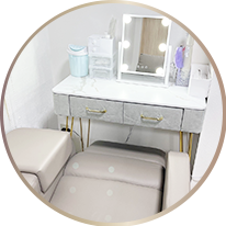 オールハンドでの小顔、ヘッドトリートメントを行ったり、光を当てるものなど様々なマシンでケアをしたりするほか、全身脱毛、パックや空気圧で有用成分を角質層のすみずみまで浸透させる『エアインジェクション』肌に打ち込む美容点滴も行っています。